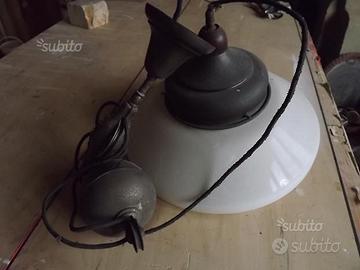 vecchio lampadario in ottone e vetro ad una lampada regolabile in altezza da contrappeso molto pesante e carrucole funzionante e in perfetto stato