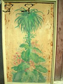 VECCHIO PANNELLO IN LEGNO CON APPENDIABITI DA MURO cm.180 x 88 x 3,5 spessore In discrete condizioni generali, necessita di restauro e trattamento antitarlo SOLO RITIRO A BELVEDERE OSTRENSE (AN)
