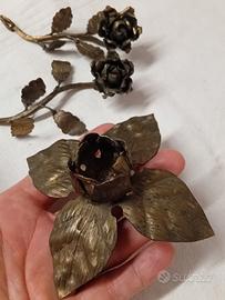 lotto di vecchi oggetti in ottone, un portacandela / porta candela e due rose davvero molto belle.
