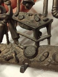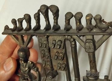 vecchio porta chiavi in ottone da parete ,raffigurante un anziano ciabattino/ calzolaio al lavoro , molto bello ed in ottime condizioni.