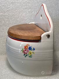 Vecchio porta sale in Ceramica con motivi floreali, marca PAGNOSSIN - Treviso