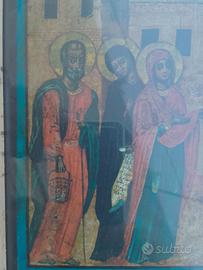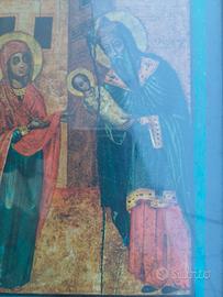 vecchio quadretto con cornice in legno di castagno con vetro e una bellissima stampa di un'icona Santa 25 x 30