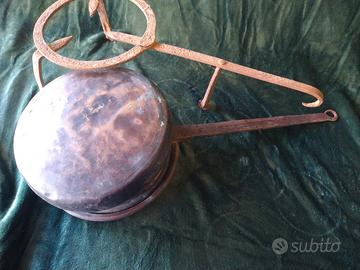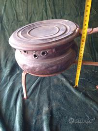 Vecchio scaldaletto in rame con supporto in ferro. In buone condizioni. Misure specificate in foto.