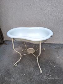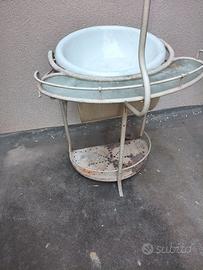 Vendo vecchio set da bagno del Novecento (credo anni '30, ma non mi intendo), composto da lavabo e bidet, mancante lo specchio, che è andato perso. Usato dai nonni, ma lasciato poi in soffitta per decenni, senza che il tempo l'abbia più di tanto intaccato. La struttura è in ferro battuto, decisamente robusta e i due recipienti sono smaltati ed in condizioni più che accettabili. Segni del tempo riscontrabili nelle foto.