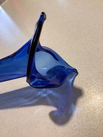 Vecchio vaso in vetro di Murano colore blu, base quadrata, altezza cm 42.