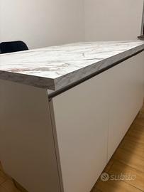 VENDO SPLENDIDA ISOLA CON TRE ANTE 1.5 metri per 1metro FINITURA BIANCA EFFETTO MARMO COME NUOVA.