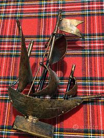 Veliero realizzato in ferro battuto molto particolare ogni minimo dettaglio è curato a mano per rendere prezioso e unico l'oggetto Colore bronzo-ramato altezza 18 cm