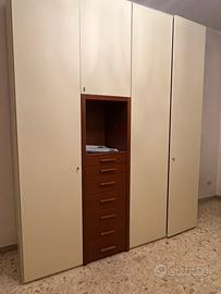 Camera per ragazzi di Mobilnovo. Composta da armadio ponte+armadio +scrivania e sedia Color ciliegio e crema