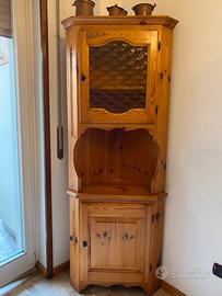 Vendesi mobili legno massello pino. In ottimo stato Misure: Larghezza x profondità x altezza Credenza 125x49x93 Pensile 119x21x90 Tavolo 127x82x76 allungabile Cassapanca 132 lato corto 200 lato lungo x50x85 Angoliera 77x41x193 Angoliera appesa 38x24x70 4 sedie