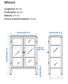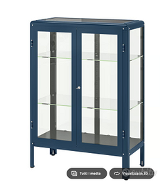 Vetrina in metallo e vetro Fabrikor Ikea colore Blu/Nero con chiave di chiusura; misure: larghezza 81 cm altezza 113 cm e profondità 42 cm.