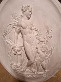 LR 180 Venere e Cupido (Thorvaldsen) - ovale h. cm 82x65 Bassorilievo di arte classica raffiguranteVenere con Cupido, realizzato in gesso bianco patinato antico, adatto per la collocazione in ambienti interni e predisposto per essere appeso a parete.Veramente bello in ambienti molto particolari come ville, e case arredate con gusto.