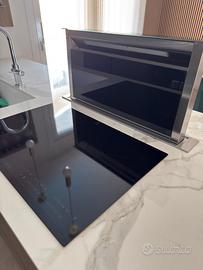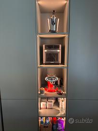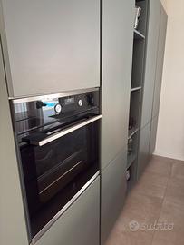 Cucina completa Veneta colore verde Minerva, parete attrezzata + penisola, grès porcellanato effetto marmo e rovere. Venduta insieme ad un mobile sotto TV per soggiorno, ideale per ambienti unici sala-cucina. La cucina ha 1 anno di vita, è pari al nuovo, pagata 16.800€ . Tutto incluso come da foto: elettrodomestici, parete bicchieri, mobile tv. Vendo causa trasloco. Specifiche: VENETA CUCINE - MOD. OYSTER COMPRESO DI ELETTRODOMESTICI: FRIGORIFERO ELECTROLUX KNT6TE18S FORNO ELECTROLUX KODEH60X LAVASTOVIGLIE ELECTROLUX KEAD 7200 L PIANO COTTURA ELECTROLUX IND. EIL83443 CAPPA FABER FABULA PLUS EV8+BK LAVELLO ELLCI QUADRA 130 ST MISCELATORE FRANKE 30Y COKTAIL CROMATO MOBILI DA SOGGIORNO VENETA CUCINE - ETHICA DEK Misure parete attrezzata: 300 lunghezza 64 profondità 240 h Penisola: 275 lunghezza 110 profondità 90 h Mobile sala: 300x45x40
