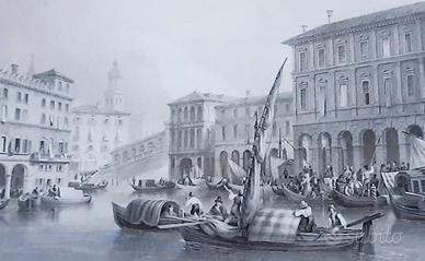 Stampa di Venezia, Il ponte di Rialto, completa di cornice bianca ad incavo spessa cm 1,5.