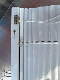 Coppia di tende veneziane bianche in alluminio, misure 1,85 m X 0,35 m. Nuove comprensive di bacchette per inclinare le lamelle. Vendibili solo in coppia