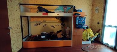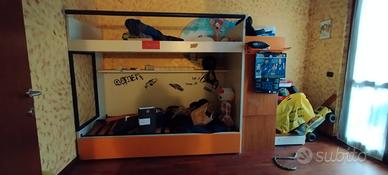 vendo letti a castello con scaletta a contenitore e cassetti + armadio angolare di colore bianco e mensole di colore arancione e blu € 200.00 smontaggio e ritiro a carico dell' acquirente entro sabato