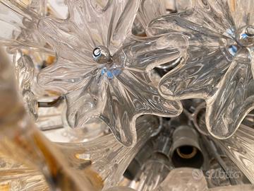 Il modello Esprit, si configura come una composizione di moduli in forma di fiori, in vetro cristallo e ambra, lavorati a mano.