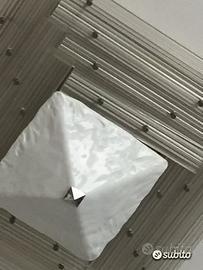 Venini lampada da parete in vetro di Murano. Plafoniera Venini modello AZTEC anni 70. Nastri in cristallo trasparente. Comprende anche piramide in cristallo bianco smerigliato con bulloni rotondi in acciaio cromato come la struttura del lampadario. Forma quadrata, misure: 60x60 cm / H. 26 cm. Peso kg 15. La lampada Venini si presenta in perfette condizioni ed è immediatamente collocabile.