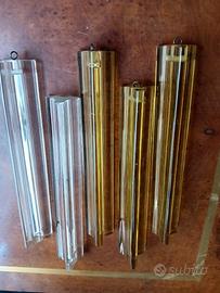 Vetri di ricambio per lampadario o applique Venini trilobo, lotto di 5 pezzi, due trasparenti e tre caramello. Prezzo per tutti e 5 i pezzi. Misura in altezza 20 cm non calcolando l'occhiello.