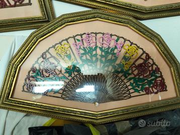 Trittico di ventagli in legno intagliati a mano Pezzi unici ,con fondo in raso. Prezzo trattabile