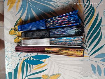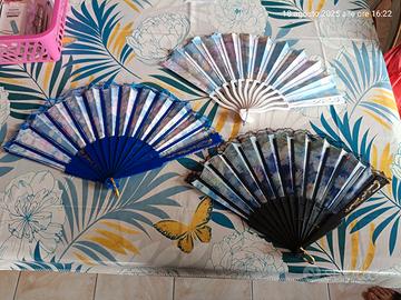 Bellissimi ventagli decorativi, perfetti per l'estate o come elemento decorativo. Sono nuovi e presentano un design elegante con immagini di pavoni e fiori.