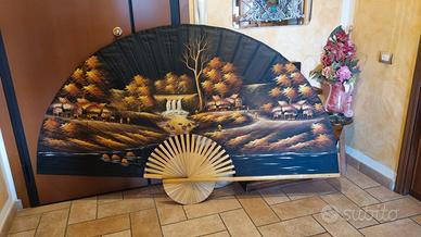 Ventaglio decorativo casa 1,30m di altezza x 2,15m di larghezza da aperto. Ottimo da appendere. Nuovo, mai usato con disegno orientale su sfondo scuro. Prezzo dj acquisto 65€