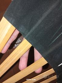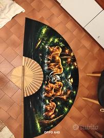 Ventaglio mai potuto usare purtroppo nn ho uno spazio (2 locali purtroppo) da parete cm 1.50 x 90 H in centro in legno bambù e cotone robusto dipinto a mano raffigurati gli elefanti che si dice portino buona fortuna perché sono visti come animali generalmente pacati e porterebbero calma tranquillità serenità unione dalle foto nn si.vede bene purtroppo ma i colori bellissimi con punti brillantinati il verde dai vari toni che indice alla pace rilassa la vista come in natura da idea della buona salutare aria che abbiamo in collina montagna e silenzio.