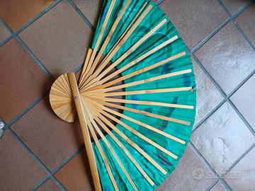 Ventaglio gigante da parete, disegni orientali, verde brillante Da chiuso. Isura 60 cm