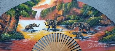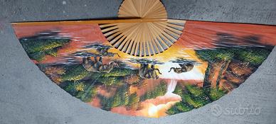 ventaglio stupendo in legno dipinto natura savana circa aperto 2 mt