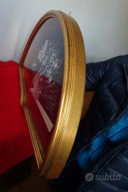 Elegante ventaglio vintage con teca da esposizione, di grandi dimensioni 74x43 cm Ritiro gratuito presso il venditore.