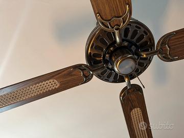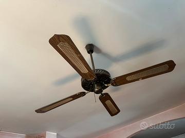 Vendo ventilatore da soffitto quattro pale in simil legno con particolari in paglia di Vienna. Molto efficace e potente, muove un sacco d’aria, rinfresca subito l’ambiente. Grande, diam circa 100/110 cm 3 velocità selezionabili Buone condizioni