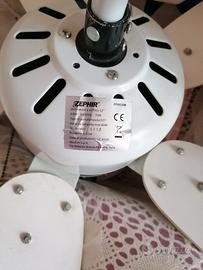 Vendo ventilatore a soffitto ZEPHIR modello ZFS9110B in buone condizioni, perfettamente funzionante e pulito. Specifiche Principali: • Dimensioni: Grande diametro di 52 pollici (circa 132 cm), ideale per stanze medie e grandi. • Ventilazione: Dotato di 5 pale bianche per un flusso d'aria ottimale. Potente motore da 70W. • Illuminazione: Plafoniera in vetro opaco integrata con attacco lampadina standard E27 (attacco grande), supporta lampadine fino a 60W max (o equivalenti LED per un maggiore risparmio). • Controllo: Pratico controllo manuale tramite due catenelle a sfere (una per la luce e una per le velocità della ventola).