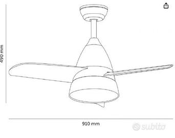 Ventilatore da soffitto con luci a Led 24W e telecomando. Ventilatore con 3 pale reversibili, motore DC, colore bianco. Come detto, possibile cambiare il verso della ventilazione con il telecomando. Possibile cambiare la tonalità della luce con il telecomando. Invertendo il verso è utile d'inverno. Ottima soluzione per l'areazione sia di inverno che d'estate in base al verso della rotazione delle pale. Possibile ritardare lo spegnimento del ventilatore con il telecomando. Un ottimo ventilatore, silenzioso. Ventilatore pari al nuovo. Possibilità di vederlo in funzione (devo ancora smontarlo). Misure vedi immagine.