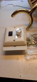 Ventilatore da soffitto con lampada + comado a parete per accensiopne e regolazione del la velocità. Attualmente è smontato con nessuna parte mancante (acquisto come visto e piaciuto)