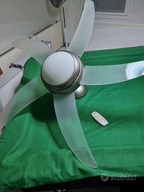 ventilatore e lampadario a 5 pale, con tre modalità di potenza delle pale, lampadina e 27, comandabile con telecomando. perfettamente funzionante. non spedisco.