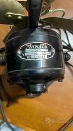 Vendo ventilatore da tavolo Marelli anni 30/40 Completamente funzionante -Accensione regolare -Gira bene e in modo fluido -Pale, griglia e base originali -Vernice d'epoca con normale patina del tempo (non restaurato) Oggetto autentico di modernariato italiano, ideale per: o collezionisti o arredamento industrial / vintage o set fotografici o vetrine Normali segni del tempo coerenti con l'età. Vendo come da foto. Prezzo trattabile