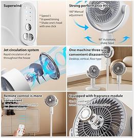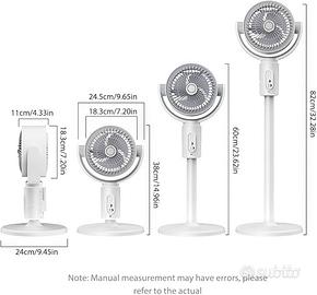 VENDO NUOVISSIMO VENTILATORE OSCILLANTE A PIANTANA 3 IN 1 SILENZIOSO CON TELECOMNDO A 5 VELOCITÁ. QUESTO VENTILATORE E' ANCHE UN VENTILATORE RICARICABILE USB, COSI DA PORTARLO OVUNQUE ED E' A BASSO CONUSMO ENERGETICO. SEMPLICE E PRATICO: Questo ventilatore è la soluzione perfetta perché capace di coniugare massimo comfort e risparmio in bolletta. RINFRESCA LA CASA COME VUOI TU: Le 5 velocità per la regolazione della corrente d’aria, permettono un utilizzo intuitivo e veloce. Facile da usare, in ufficio e nel vostro salotto o camera da letto o in campeggio. SILENZIOSO: Ventilazione silenziosa. ALTEZZA REGOLABILE: Puoi variare la sua altezza attraverso la sua barra telescopica in modo che si adatti a qualsiasi situazione; da 38 cm fino ad arrivare ai 82 cm. ARIA FRESCA OVUNQUE TU SIA: Grazie alle molteplici configurazioni che offre attraverso l'altezza regolabile, l'orientamento e il movimento delle pale, che consente di selezionare l'angolo di incidenza del flusso d'aria, sentirai il potente flusso di aria fresca ovunque tu sia. Inoltre è dotato di un bellissimo e comodissimo telecomando cosi da poter comandare il ventilatore fino ad una distanza di 10 metri. Descrizione Prodotto: Ventilatore 3 in 1 f1 fan circulation. Il nostro ventilatore è un'opzione versatile e efficiente per chi cerca un sollievo dal calore senza il peso di una bolletta energetica eccessiva. Questo modello 3 in 1 può essere utilizzato sia come ventilatore a piantana che da tavolo, rendendolo ideale per qualsiasi ambiente della casa o dell'ufficio. Dotato di un motore a basso consumo energetico da 10 W e 5 velocità regolabili, offrendoti così la possibilità di personalizzare il flusso d'aria secondo le proprie necessità. Il design è elegante e compatto, con dimensioni che lo rendono facile da posizionare e da spostare. L'opzione di altezza regolabile, da 38 a 82 cm, insieme all'inclinazione e orientamento modificabili delle pale, garantisce che l'aria fresca venga distribuita efficacemente ovunq