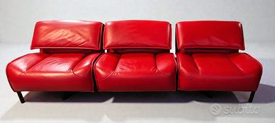 Questo bellissimo divano Veranda in pelle rossa è stato disegnato da Vico Magistretti per Cassina.