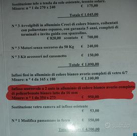 veranda doppia apertura come nuova causa trasferimento le misure le trovate in foto evidenziate NON TRATTABILE TRASPORTO A CARICO DELL'ACQUIRENTE NO PERDITEMPO