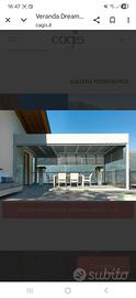 Veranda dimensioni 6x4 m in alluminio grigio e vetro, 1 lato corto a parete e gli altri 3 con vetri apribili, scorrevole e impacchettabili a libro lateralmente, completa di tende avvolgibili manualmente sia sulle pareti che sul soffitto e inoltre illuminata con faretti 2 linee di accensione. Attualmente la struttura è smontata per lavori di ristrutturazione. Non si spedisce solo ritiro sul posto.