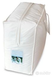 Prezzo Promozionale di fine stagione invernale -60% OFF..!! (fino ad esaurimento pezzi disponibili..!!) ************************************************************** ECCELLENTE IMBOTTITURA TERMICA IN PIUMA D'OCA NATURALE.... CON I PREZZI MIGLIORI SUL MERCATO.... VERO Piumino d'Oca Naturale Matrimoniale Invernale Bianco Composizione interna (50% Piumino - 50% Piumette) Punti Calore 4: (WARM) CALDISSIMO con 320 grammi/m2 di piume Imbottitura in Piuma d’Oca Naturale, opportunamente lavata e sterilizzata ad alte temperature in modo da renderla altamente anallergica e garantire quindi un elevato grado di igienicità. Tutte le piume utilizzate sono piume vergini e non rigenerate e grazie al pregiato piumino, proveniente da allevamenti controllati dalla regione della Bretagna Francese, di cui è composto questo manufatto permetterà di mantenere il vostro regolare calore corporeo garantendovi un confortevole riposo: il prodotto giusto per le stagioni più fredde e per ambienti poco riscaldati. Imbottitura 100% Piuma d’Oca Naturale Vergine da 320 grammi /metroquadro. Tessuto esterno 100% Raso di Cotone pettinato con 120 fili al centimetro quadrato con cuciture a doppia battitura a quadri chiusi che evitano lo spostamento e la fuori uscita delle piume, garantendo così una distribuzione del calore uniforme su tutta l’estensione del piumino.....rivestimento super resistente anallergico e antiacaro poichè realizzato in aziende che rispettano gli standard OEKO-TEX 100, un sistema di certificazione indipendente il quale assicura che i tessuti raggiungano alti standard qualitativi certificando l'assenza di sostanze nocive negli stessi. l Piumone è nuovo, mai utilizzato, verrà inviato nelle sua comoda sacca antipolvere e salvaspazio per riporlo durante i periodi di non utilizzo e per mantenere l'imbottitura omogenea e stabile.