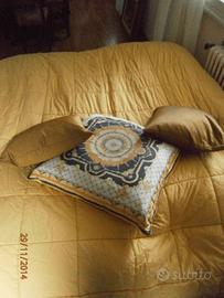 Lussuosa e raffinata trapunta originale come da etichetta Versace Home collection nei toni dell’azzurro e del giallo oro a motivo barocco. Usata pochissimo, calda, leggera e reversibile, è appena uscita dal pulisecco per correttezza, visto il pregio dell’oggetto. Prezzo originale superiore ai 3000 euro. L’interno è in poliestere. Nelle immagini è stesa su un letto matrimoniale king size. Sono esclusi i cuscini, eventualmente vendibili separatamente.