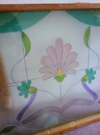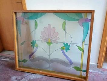 Vendo bellissima vetrata decorativa realizzata in vetro colorato,con motivi floreali in stile liberty. Dimensioni incluso il telaio: Lunghezza 124 cm, Altezza 104 cm, profondità 9 cm . Telaio in legno massello incluso. Ottime condizioni.