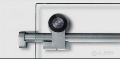 La vetrata è il mod. DUNE (fondo sabbiato, disegno trasparente con particolari incisi), vedi foto, scorrevole ridosso muro e la tipologia di scorrimento è la Soft Zero (vedi foto particolare di scorrimento).