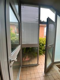 Vetrata angolare, ricomponibile anche in posizione lineare.