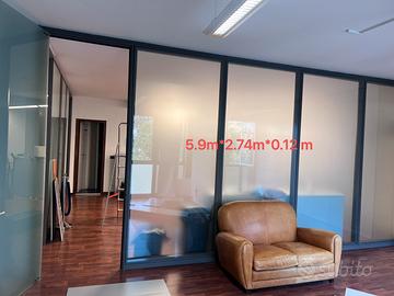 Pareti divisorie per ufficio, con listelli argento satinato ,vetro stratificato 10 mm. Materiali di qualità, soluzione robusta ed elegante. ✅ Ottime condizioni ✅ Design moderno e professionale ✅ Perfette per suddivisione ambienti ✅ Smontaggio e trasporto a carico dell’acquirente prezzo trattabile. Contattami per maggiori informazioni o per fissare una visita.