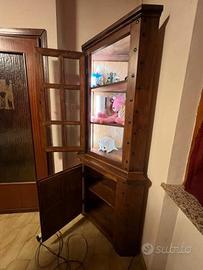 Vendo splendida vetrinetta angolare, ideale per valorizzare bottiglie e bicchieri in modo elegante all’interno della zona living. Caratteristiche principali: •Struttura ad angolo 90°, perfetta per ottimizzare gli spazi e adattarsi facilmente a qualsiasi ambiente •Parte superiore con vetrina in vetro, ideale per esporre alcolici o oggetti decorativi •Mobiletto inferiore con anta, comodo per riporre accessori •Illuminazione LED interna automatica: si accende all’apertura della vetrinetta, creando un effetto molto scenografico •Design raffinato, perfetto per soggiorni moderni o classici Condizioni: pari al nuovo, sempre tenuta con cura Perfetta per chi vuole un elemento d’arredo pratico ma anche di grande impatto estetico.