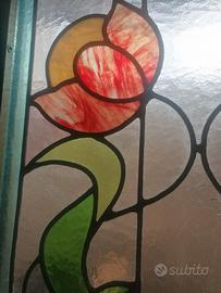Copia di vetri artistici saldati a piombo con motivi floreali in stile liberti data metà novecento adatte x porte finestre e altri usi
