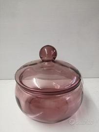 Antichi accessori da toilette in vetro rosa. Al porta profumo manca la pompetta