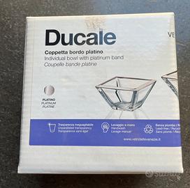 Vetri delle Venezie. Coppetta in vetro bordo platino linea ‘Ducale’. Decorata a mano. Misure in cm: 11 × 11. Nuovo, mai usato, nessun difetto, nella scatola originale.