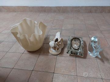 Vendesi stock di 20 scatole di vetri di Murano di vari periodi ( vasi, bicchieri, soffiati, piccole sculture, ecc.. ) adatte soprattutto per chi ha un'attività di vendita della merce in oggetto. LI VENDO SOLO TUTTI ASSIEME CAUSA TRASLOCO, NON SEPARATI.